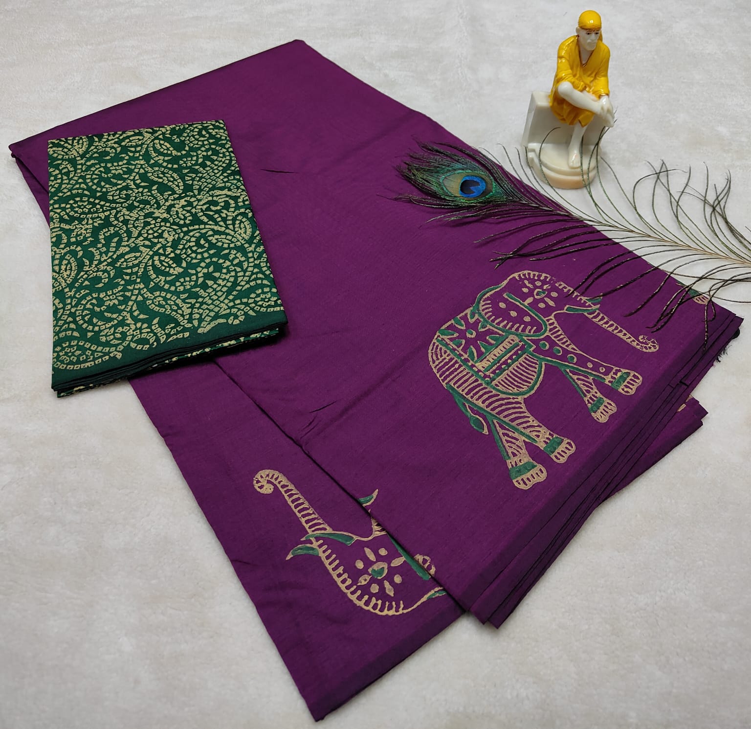 Grace your wardrobe with this beautifully crafted South Cotton Mix Block Printed Saree, designed for comfort and timeless appeal. Made from a soft polycotton blend, it offers a breathable, lightweight feel that drapes effortlessly all day long.