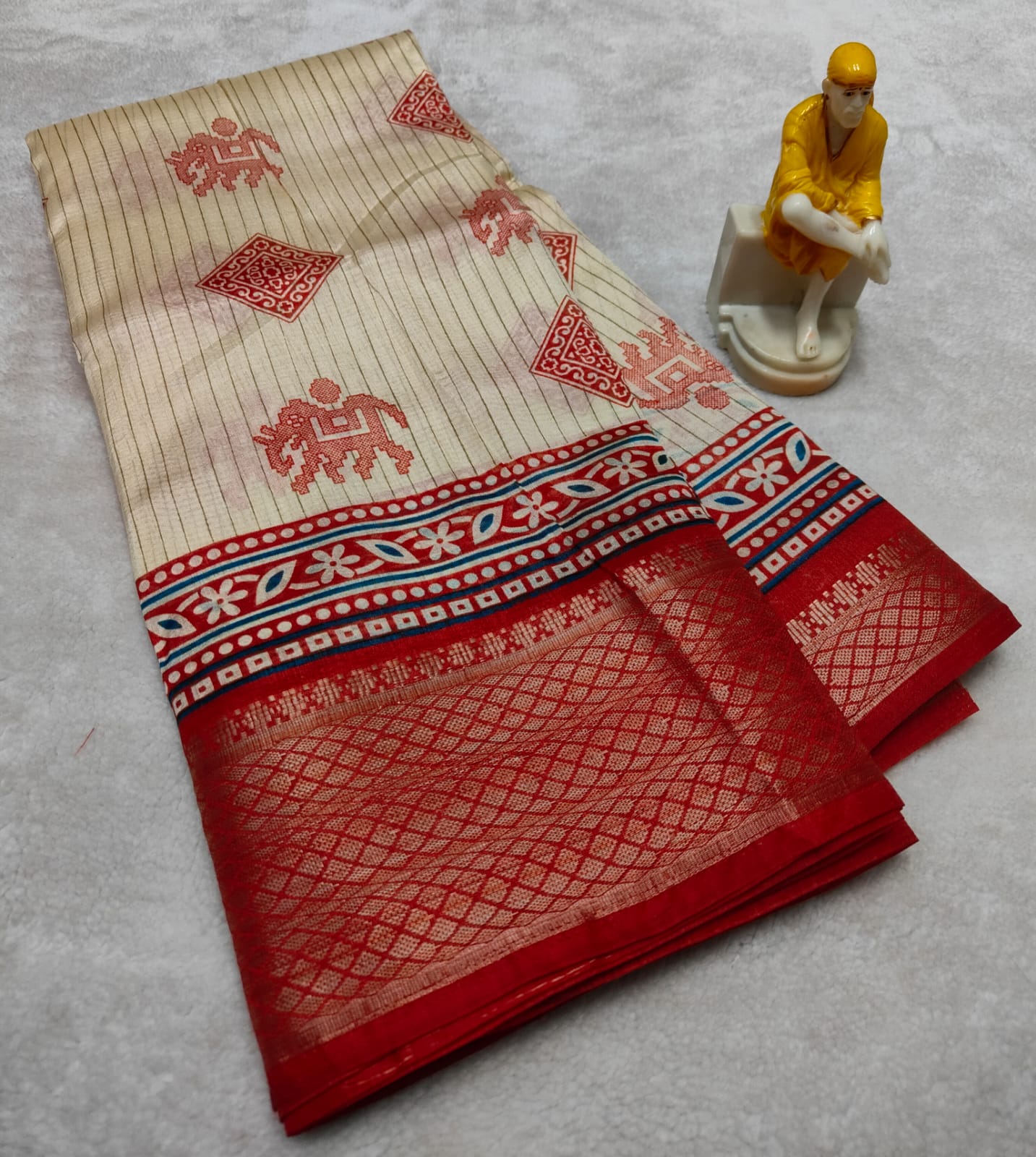 Experience the perfect blend of elegance and comfort with our affordable Dolla Silk and Mixed Cotton sarees. Smooth to touch, lightweight, and crafted for everyday wear, each saree features a grand Banarasi border and comes with a matching blouse. Perfect for daily elegance or festive charm, these sarees drape beautifully and feel effortless to wear. Approx. 6m in length, designed for a flawless look every time.