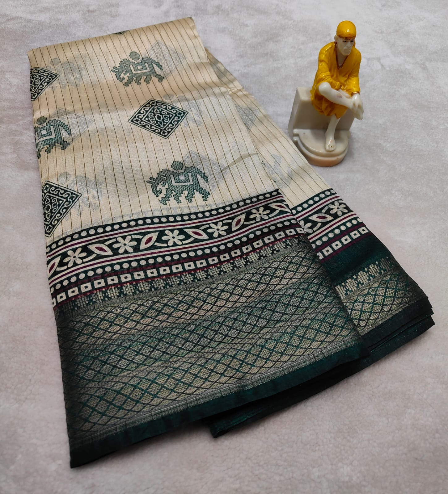 Experience the perfect blend of elegance and comfort with our affordable Dolla Silk and Mixed Cotton sarees. Smooth to touch, lightweight, and crafted for everyday wear, each saree features a grand Banarasi border and comes with a matching blouse. Perfect for daily elegance or festive charm, these sarees drape beautifully and feel effortless to wear. Approx. 6m in length, designed for a flawless look every time.