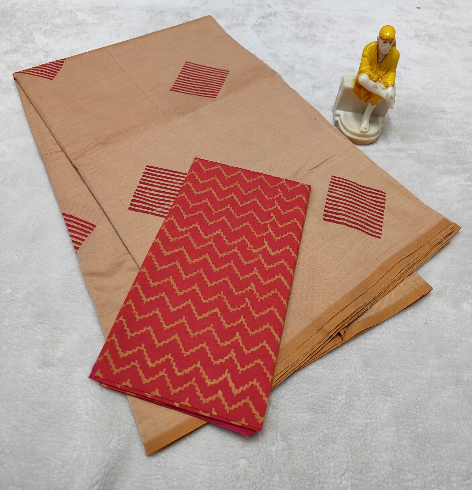 Grace your wardrobe with this beautifully crafted South Cotton Mix Block Printed Saree, designed for comfort and timeless appeal. Made from a soft polycotton blend, it offers a breathable, lightweight feel that drapes effortlessly all day long.
