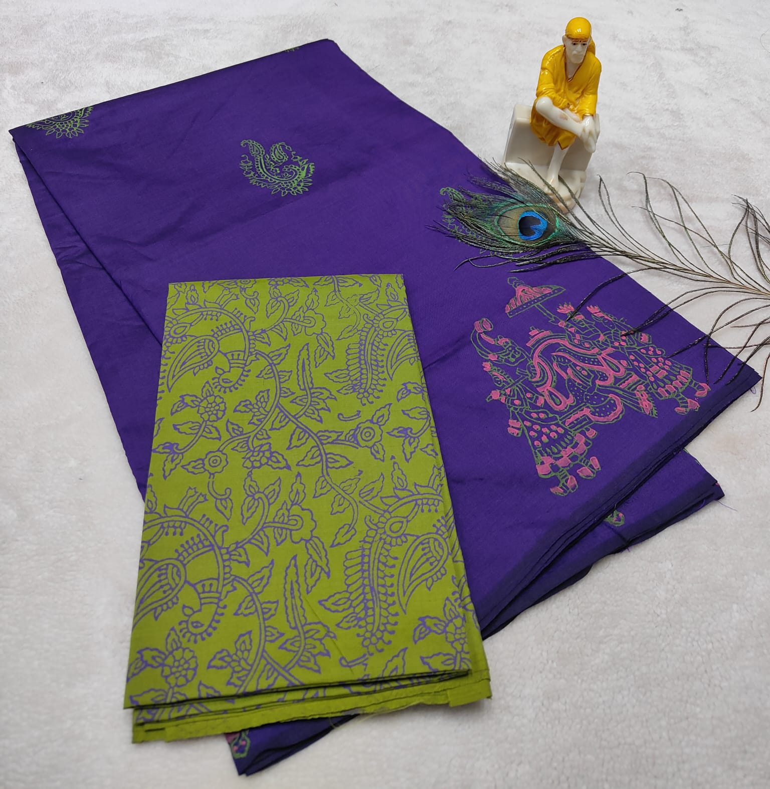 Grace your wardrobe with this beautifully crafted South Cotton Mix Block Printed Saree, designed for comfort and timeless appeal. Made from a soft polycotton blend, it offers a breathable, lightweight feel that drapes effortlessly all day long.