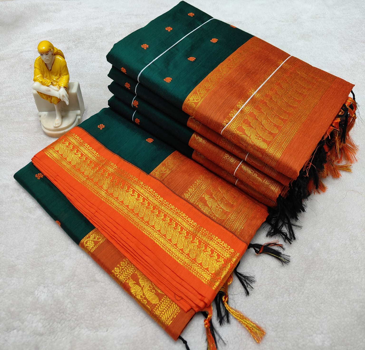 Elevate your summer wardrobe with our Kalyani Cotton sarees featuring beautiful Buttas designs! Made with lightweight and breathable cotton, these sarees are perfect for warm weather. Choose from a variety of vibrant colors and stand out in style. Upgrade your saree collection today!