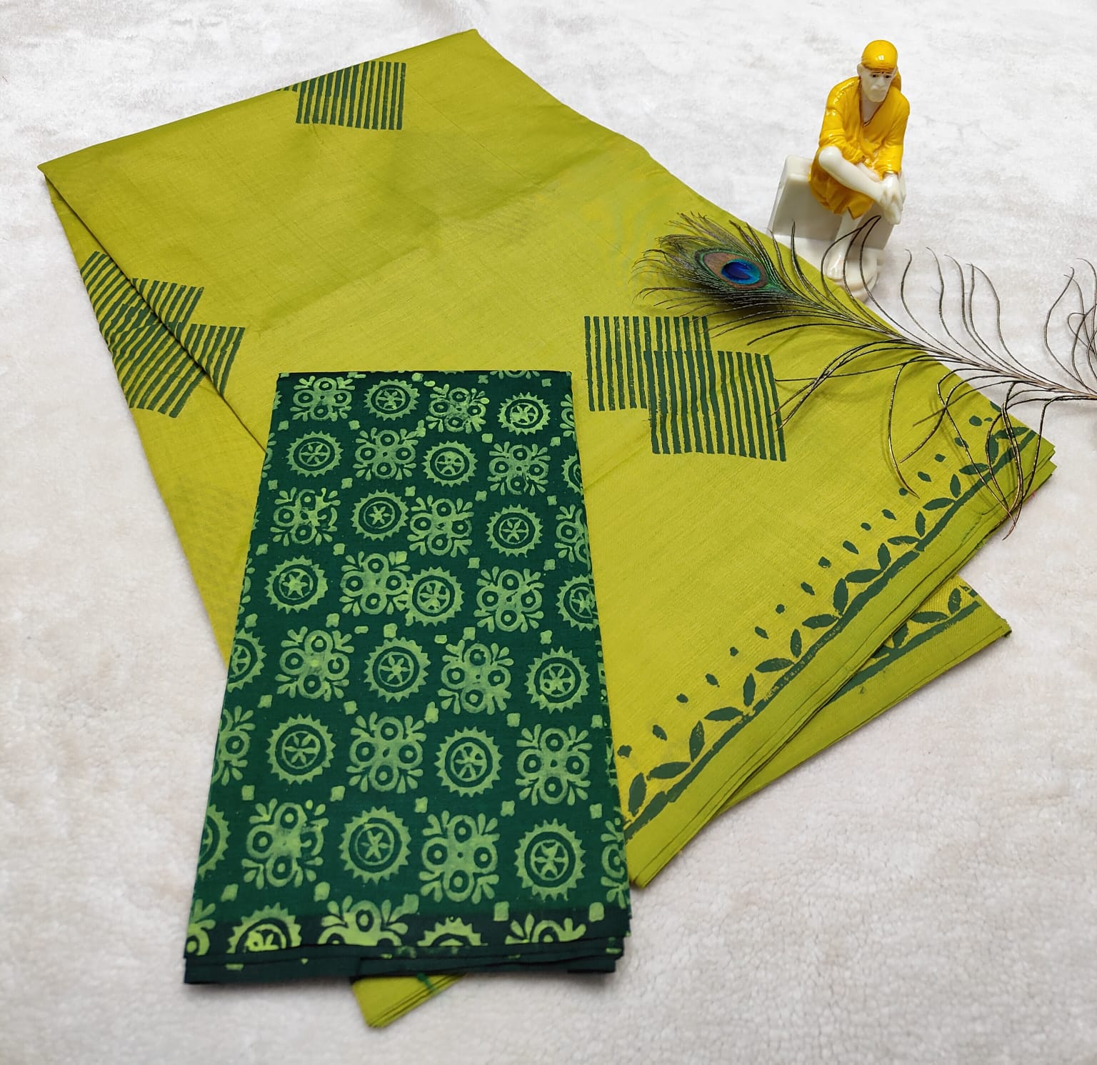 Grace your wardrobe with this beautifully crafted South Cotton Mix Block Printed Saree, designed for comfort and timeless appeal. Made from a soft polycotton blend, it offers a breathable, lightweight feel that drapes effortlessly all day long.