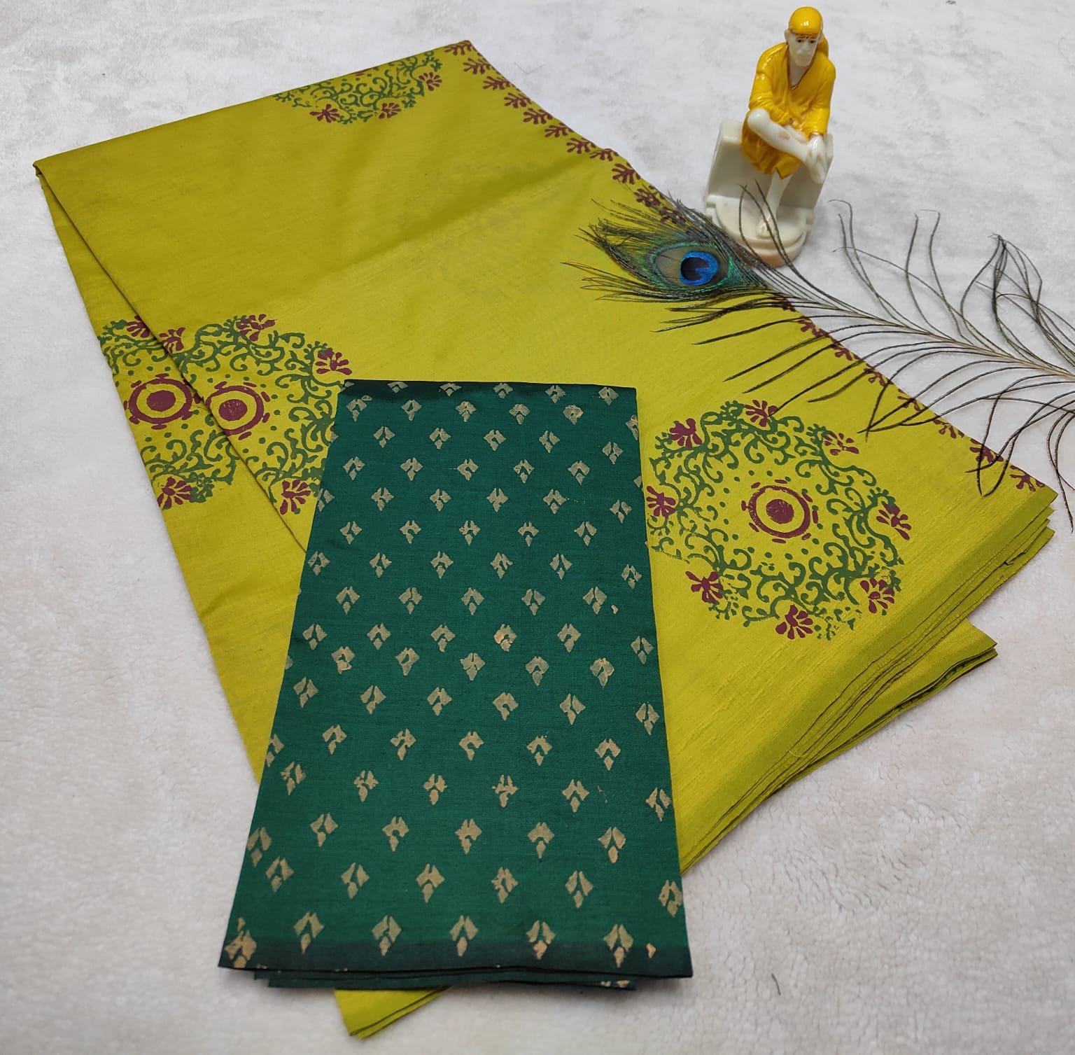 Grace your wardrobe with this beautifully crafted South Cotton Mix Block Printed Saree, designed for comfort and timeless appeal. Made from a soft polycotton blend, it offers a breathable, lightweight feel that drapes effortlessly all day long.