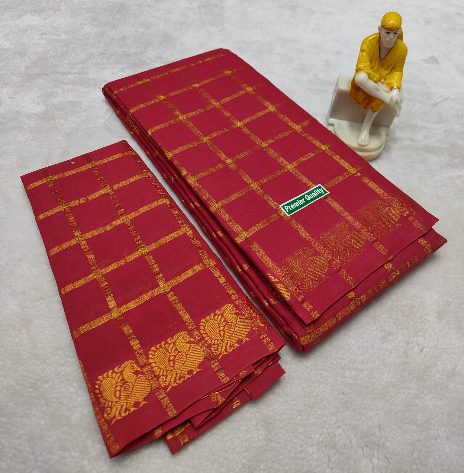 These are not defects. They are living proof of handmade craftsmanship — marks of a saree that has been touched by human hands, sun, water, and tradition.